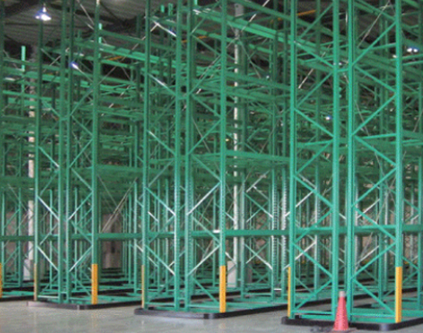 工作原理:配合三向堆垛叉车,叉车转弯半径小,叉臂三向操作,可在狭窄通道多角度插取货物,货物先进先出。