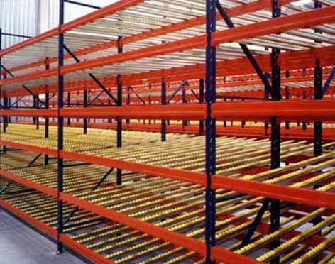 结构组成:通常由中型横梁式货架演变而来,由货架柱片、流利条层面组成,有时配合钢层板使用。流利条多由银轮铝合金、钣金、工程塑料制成,层面呈一定坡度(3°左右)放置,货物置于塑料周转箱或纸箱中,靠自身重力下滑。