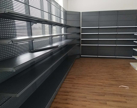 介绍:商超货架是超市中的摆放货物的架子。商超货架可单双面可相互结合,层面可按商品大小 任意调节,单面货架可与转角配套组合,双面货架可与半圆配套组合,使商场布局达到更完 美的效果。